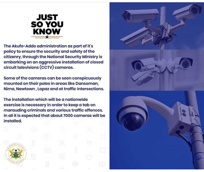 The Akuffo Addo led adminstration,in concept with the National Security Ministry is embarking on an installation of Closed Circuit Television (CCTV) Camera project Nationwide.