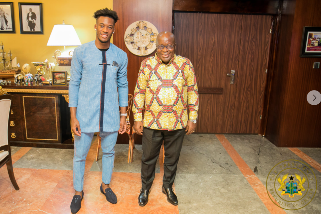 On Monday, 7th June 2021, Ghanaian-born Chelsea footballer, Callum Hudson-Odoi, paid a courtesy call on THE first gentleman of our land, H.E Nana Addo at Jubilee House, the seat of our nation’s presidency. The vibrant and energetic 20 years old young man had some valuable time with the President.